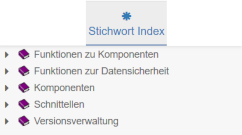 Den Stichwort Index könnte man vorausgedachte Volltext Suche betrachten. Hier werden Begriffe strukturiert angeboten die beim Anklicken dann alle zu diesem Stichwort passenden Themen auflisten. Wir halten diesen Weg für einen sehr mächtigen Lösungsansatz für Ihren Weg zur gewünschten Information.