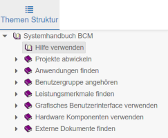 Zeigt einen Strukturbaum den Sie nach den angebotenen Themen durchwandern können. Die oberste Ebene mit den Themen
