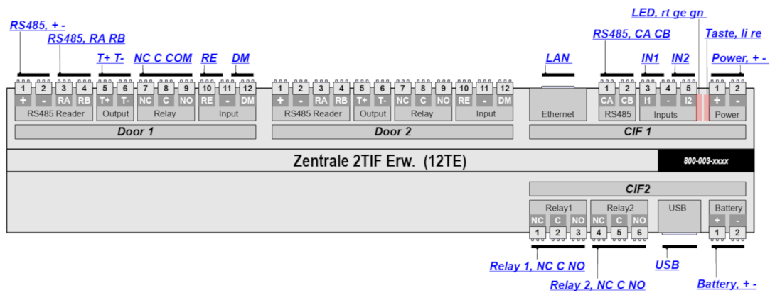 - Diese Zentrale stellt 2 oder 4 Stk. Türinterface bereit.
