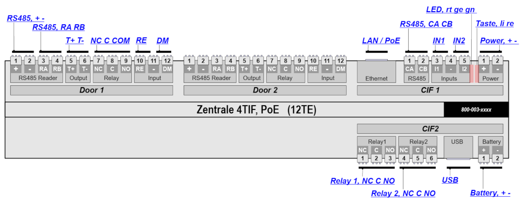 - Diese Zentrale stellt 2 oder 4 Stk. Türinterface bereit.