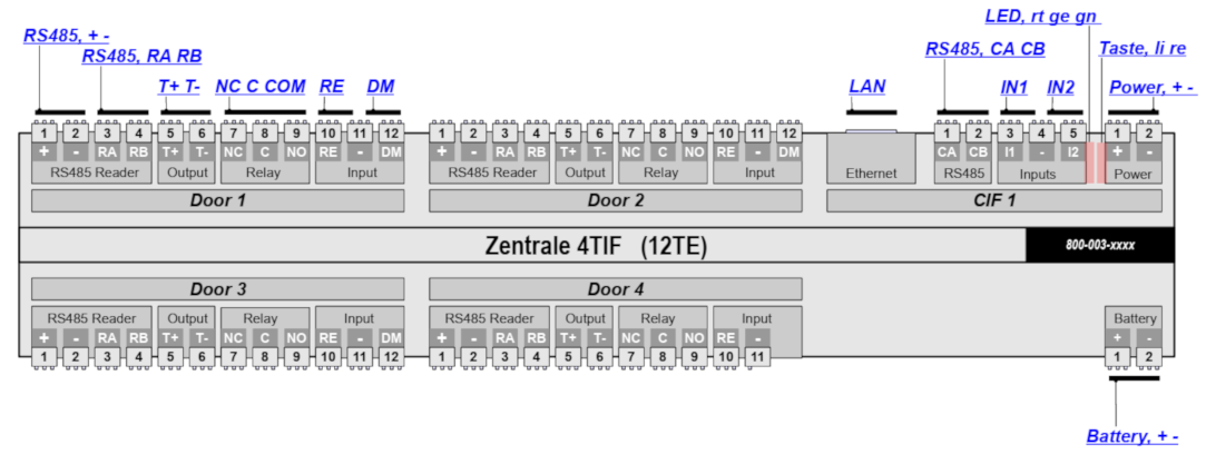 - Diese Zentrale stellt 2 oder 4 Stk. Türinterface bereit.