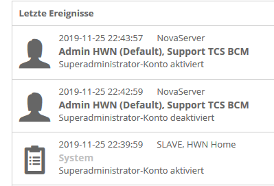 Jede Änderung des Freigabestatus wird in der Übersicht Letzte Ereignisse angezeigt und dauerhaft in der Ereignis-Datenbank gespeichert.
